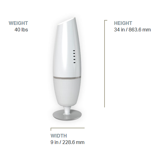 It looks like a simple floor lamp, or a sleek picture frame on the wall.