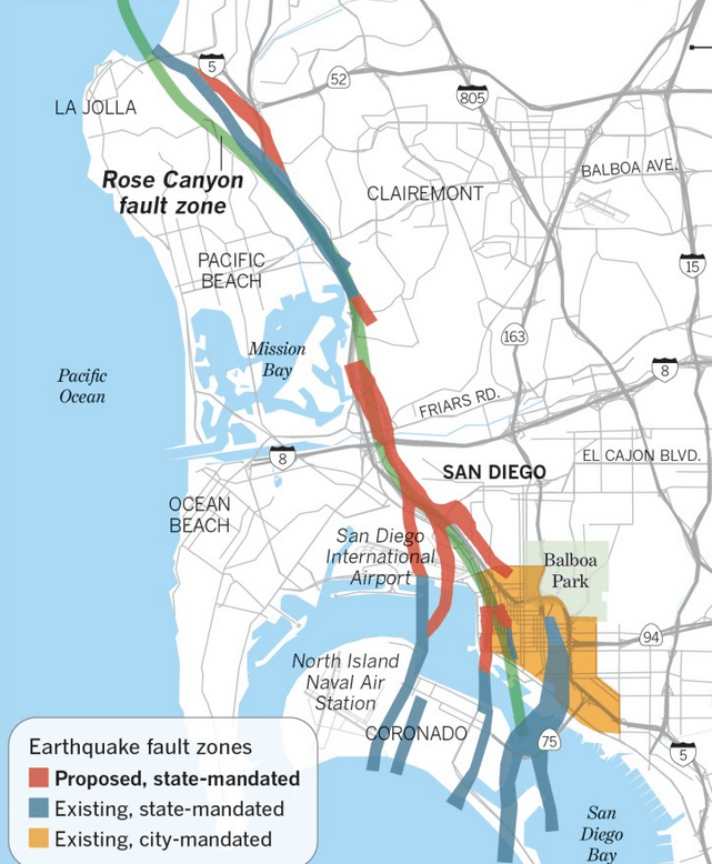 It will soon become harder to develop many properties in San Diego due to growing evidence that the Rose Canyon earthquake fault, which runs beneath the city, is larger and more active than scientists once thought.