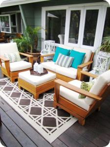 What I actually have in my backyard is a concrete patio, a couple of trees and a chicken coop. There is also my DIY landscaping, better on some days than others. But my humble, poolhouse-free yard does not mean I can’t create a lovely outdoor room to call my own. With good furniture, a few plants and some imagination, anyone can have a lovely outdoor room.